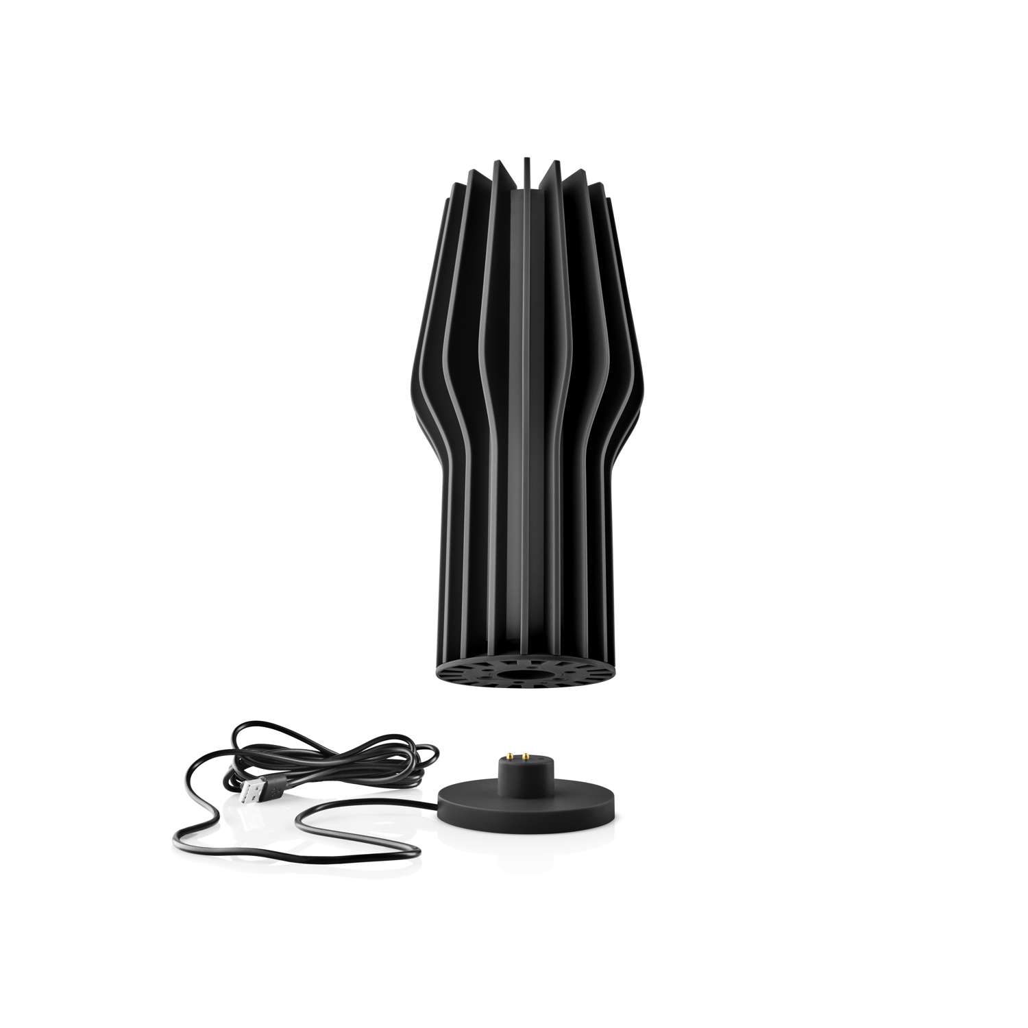 With its sculptural design and cordless convenience, the RADIANT LED lamp delivers warm, ambient lighting with practical versatility—indoors or out. Rechargeable for complete freedom of placement, it’s perfect for cozy evenings on the terrace or as a decorative accent on bookshelves or in a reading nook. Easily adjust between three brightness levels with the touch-sensitive button at the top. When needed, simply place it on the included base or charge via USB. A single charge provides up to 90 hours of battery life, keeping your space beautifully lit for days.