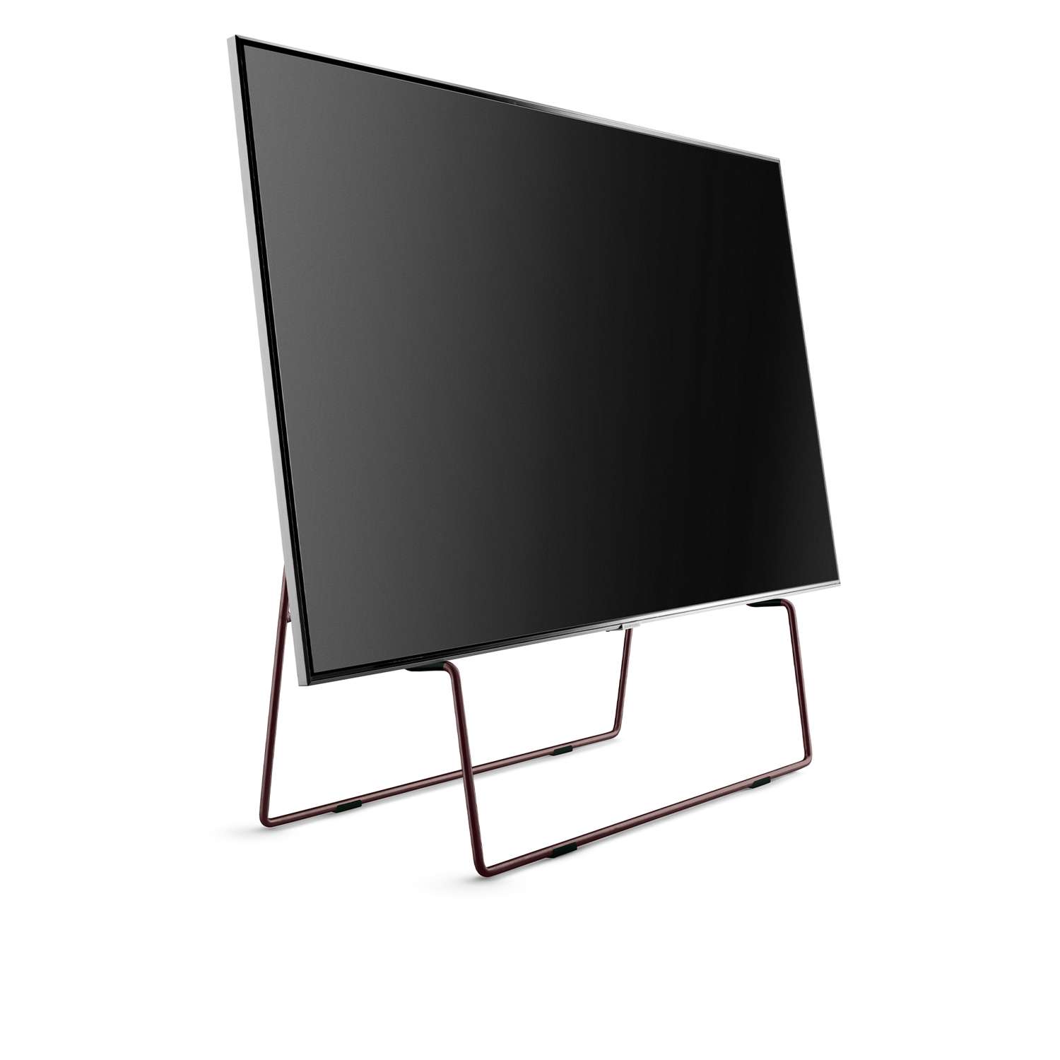 Tv-standeren passer til fladskærme fra 40” op til 65” (max 60 kg), og vil blive holdt på plads af to stilfulde sorte læderstropper.